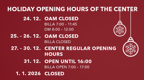 Dear customers, we would like to inform you about the opening hours of our outlet center during the Christmas holidays.