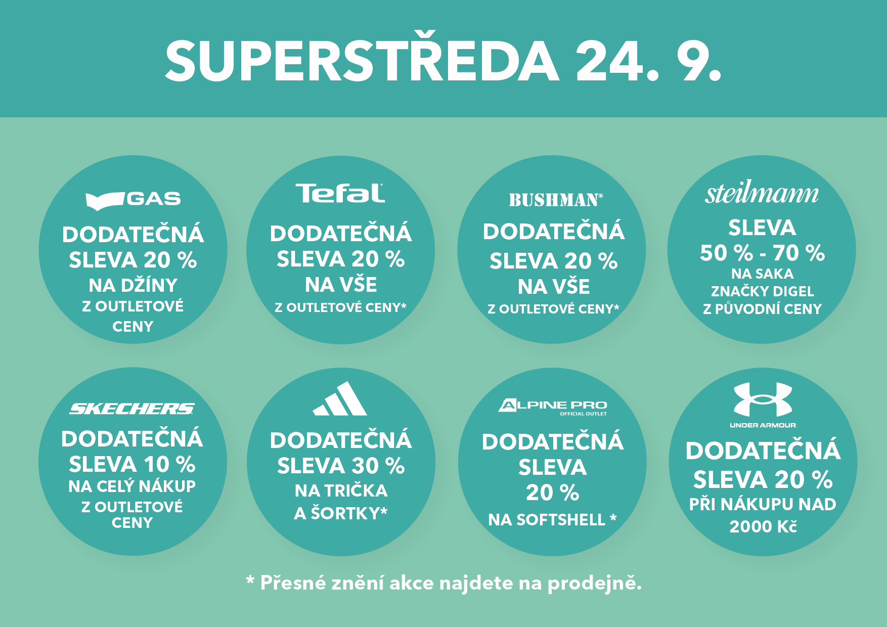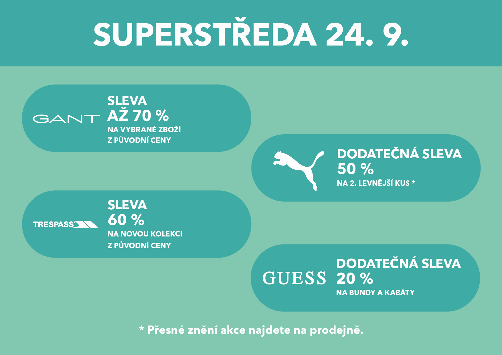 And what does it mean? That your favorite event is returning to the outlet and that you can enjoy it more often this year. Super Wednesday brings extra additional discounts even in the middle of the week, and now every month. Come and enjoy yourself even in the middle of the week and take advantage of great discounts on your favorite brands.